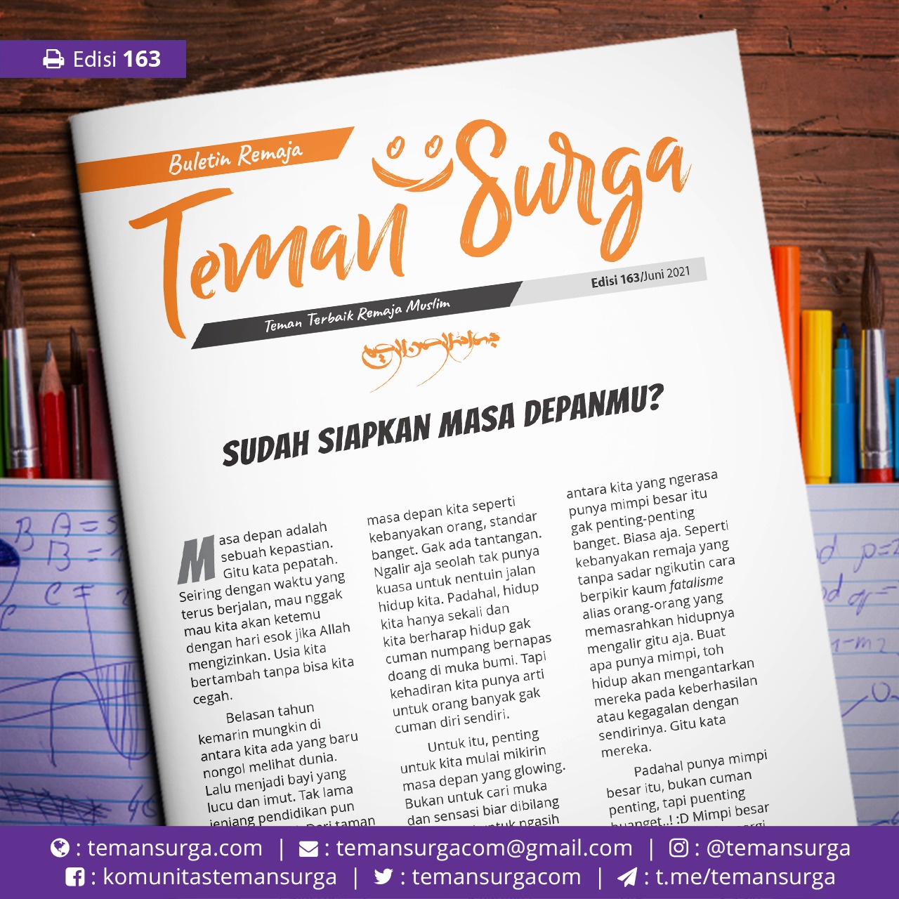 Masa depan adalah sebuah kepastian. Gitu kata pepatah. Seiring dengan waktu yang terus berjalan, mau nggak mau kita akan ketemu dengan hari esok jika Allah mengizinkan. Usia kita bertambah tanpa bisa kita cegah.